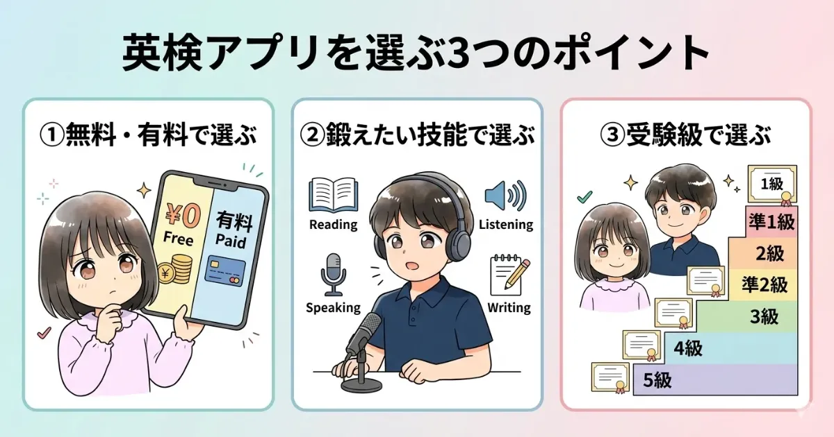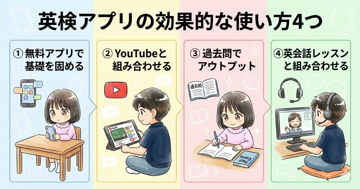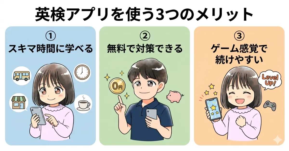 英検アプリは、目的と級に合わせて選ぶことで学習効率が上がります。