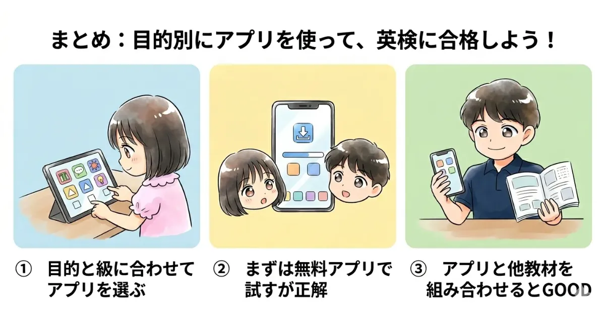 まとめ:目的別にアプリを使って、英検に合格しよう!