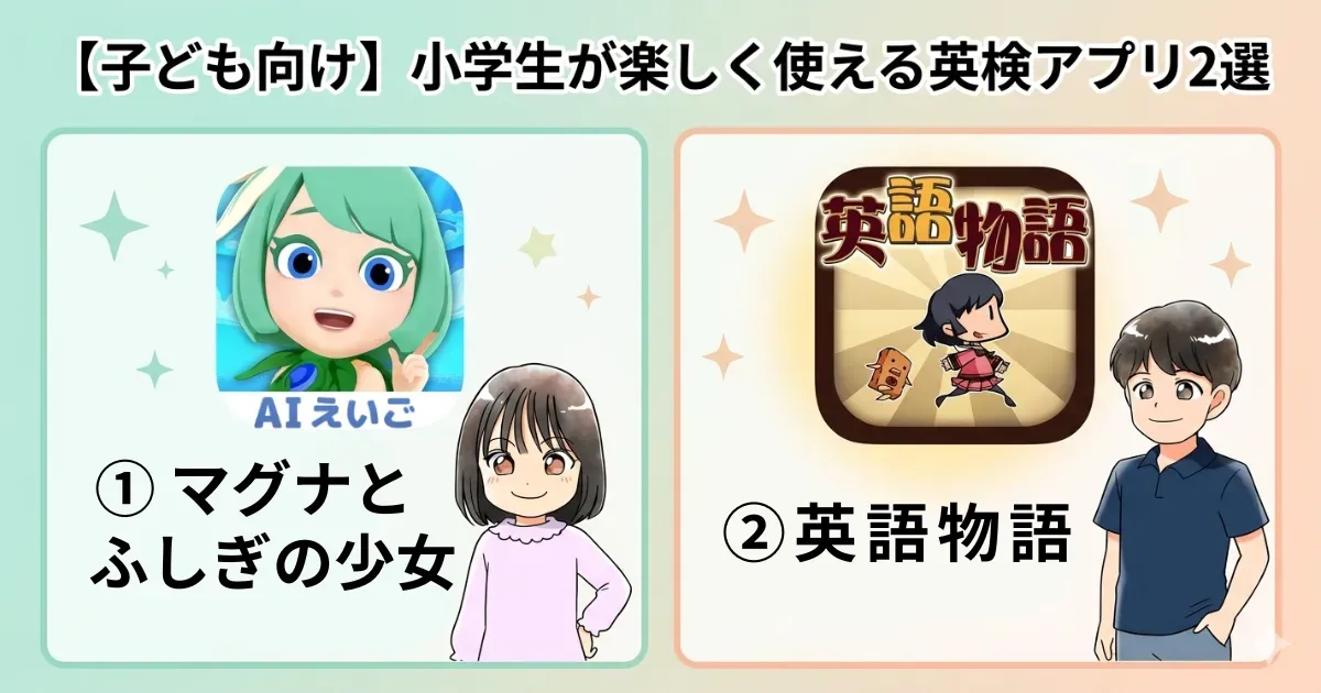 5級・4級は、「英語物語」や「マグナとふしぎの少女」のようなゲーム型アプリが合うお子さんが多いです。