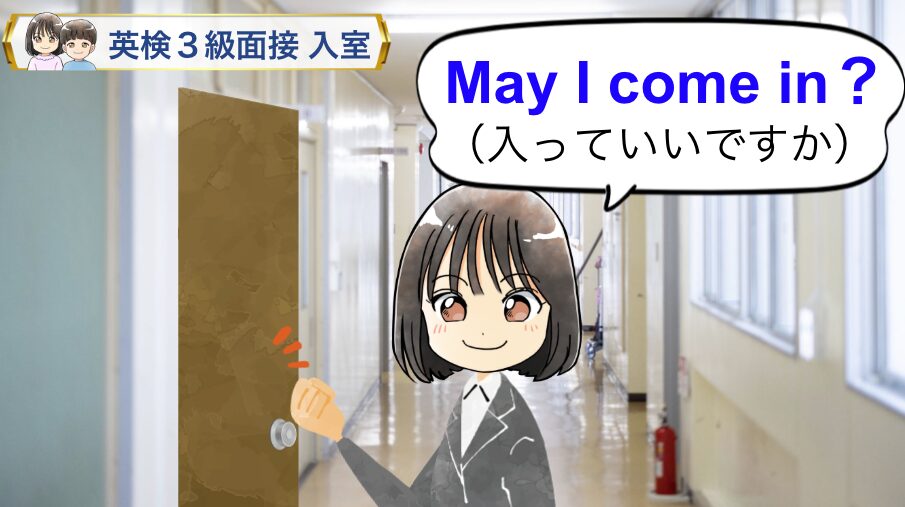 ドアを3回ノックして「May I come in?(入ってもいいですか)」と言って入室します。