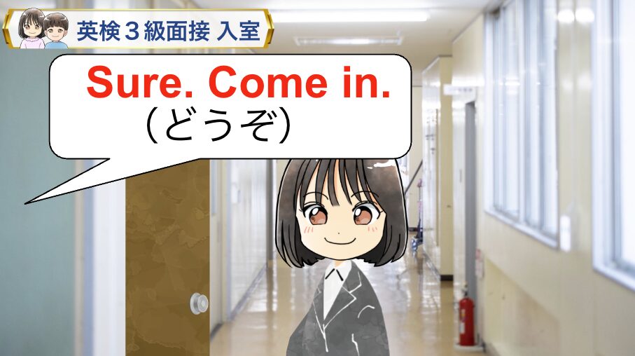 「Sure.Come in」と面接官から言われるので、入室しましょう。