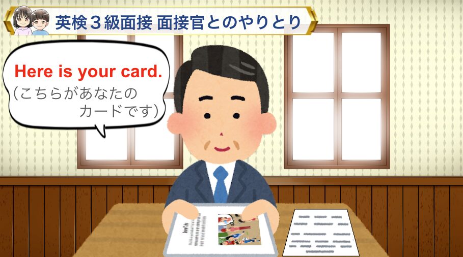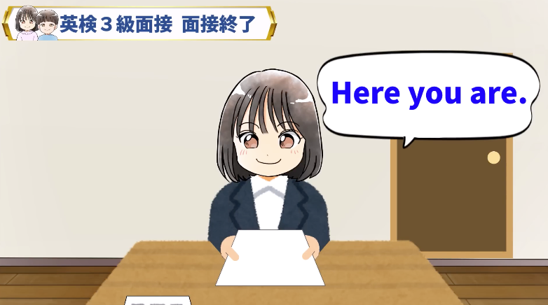 面接カードを返す | 面接官に「Here you are.」と言って渡す |