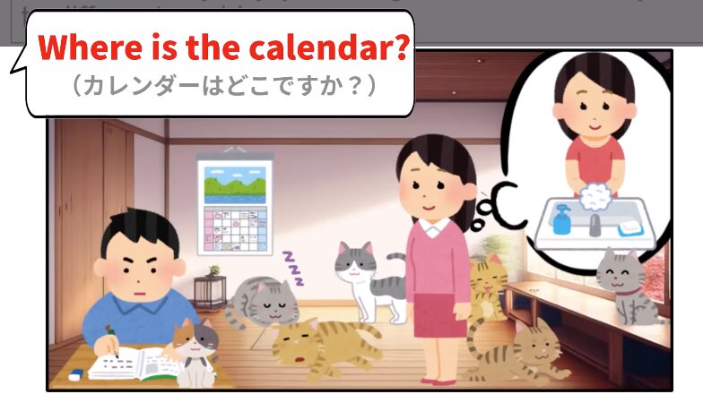 第2〜3問 | イラストの説明 | on/underなど位置表現を使う |