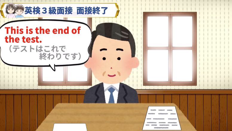 すべての質問が終わると、面接官が試験の終了を告げます。