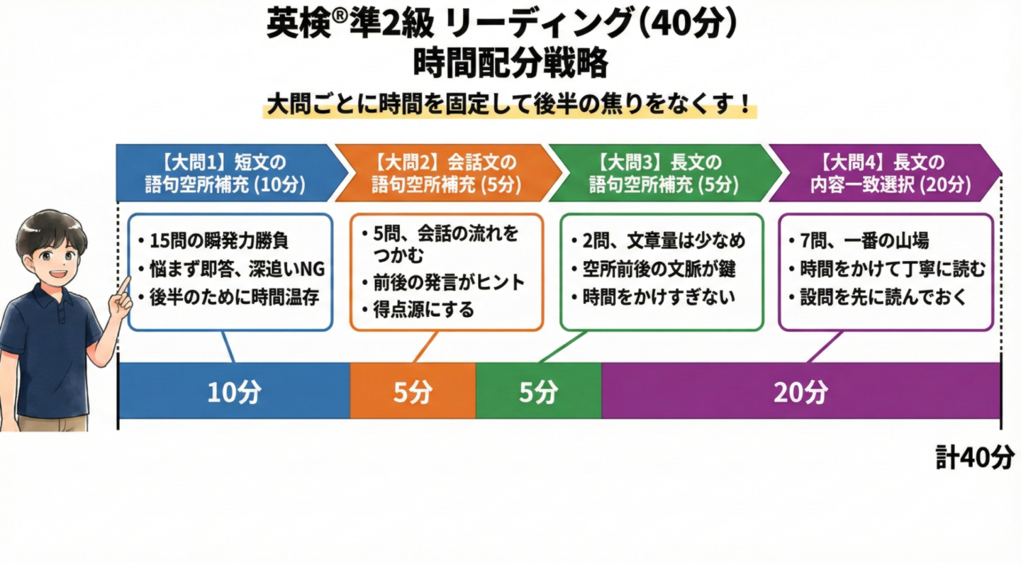 時間配分を“固定する”ことが、準2級を突破するいちばんの近道です。